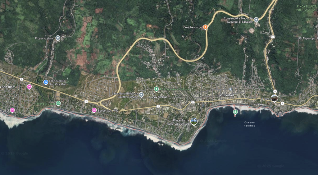 La Libertad is right on the coast, a lovely little town with a great point break.
